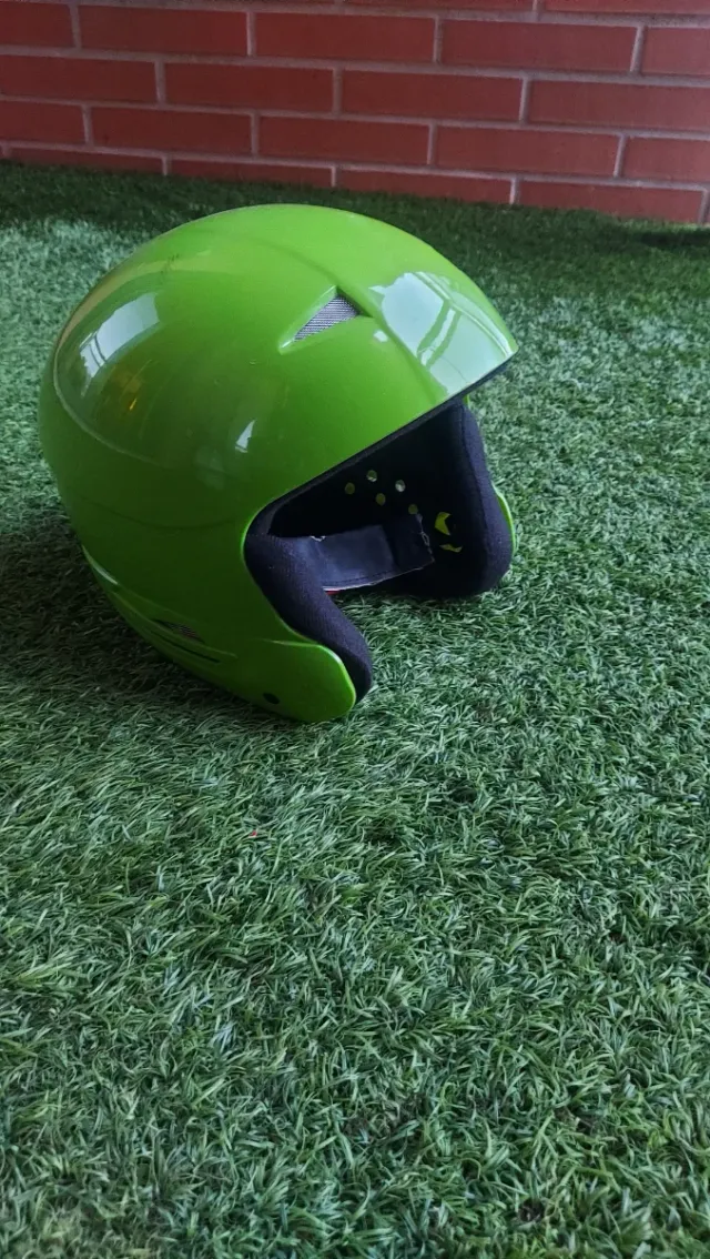 Detalles del productoCasco de protección para niños en color verde brillante. Talla S (51-53 cm). Interior con zonas acolchadas. Enganche trasero para sujetar las gafas de esquí. Se habrá usado unas 10 veces.