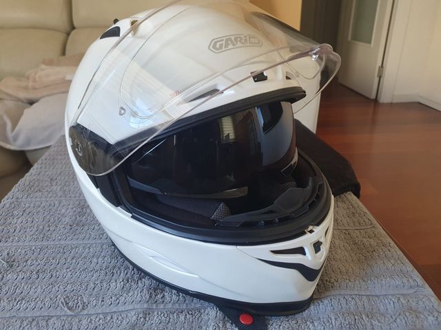 Detalles del productoCasco integral de fibra de vidrio, Talla L, 1430g +- 50g, sistema de extracción rápida del acolchado y cierre de doble anilla. Usado muy pocas veces y sin ninguna caída ni golpe.