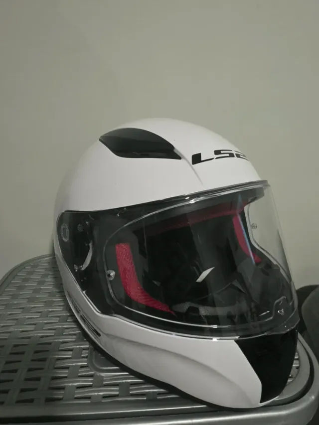 Casco integral LS2 Rapid II. Talla M, con diseño moderno y seguro. - Color blanco con detalles en negro. - Visera transparente. - Interior con forro rojo.