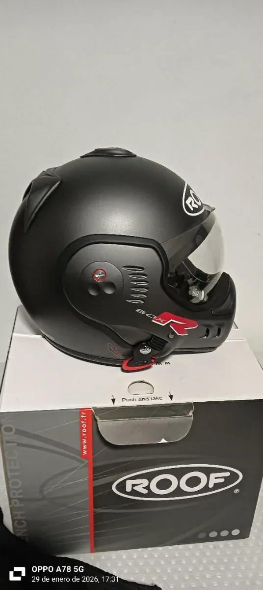 Detalles del productoComprado para mi mujer utizado tan solo una vez,talla 56.Casco de moto abatible de la marca Roof, modelo V8 R Presenta un acabado mate y un diseño deportivo.