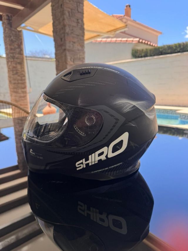 Casco integral de la marca Shiro en talla XS. Diseño moderno y elegante. - Material: Carbono. - Cierre de seguridad. - Visera clara.