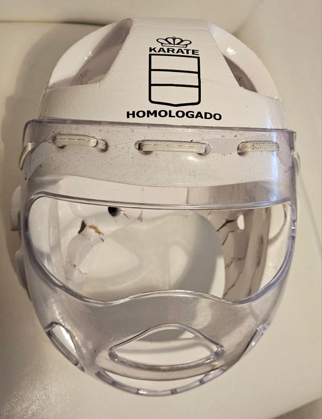 Detalles del productoCasco de karate de la marca Daedo, homologado para competición. Presenta algunas señales de uso.
