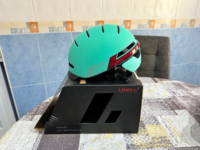 Tiene intermitente dependiendo al lado que vayas, tiene luz de freno, y tiene microfono integrado para poder hablar. Esta en perfecto estado nunca se ha usado.