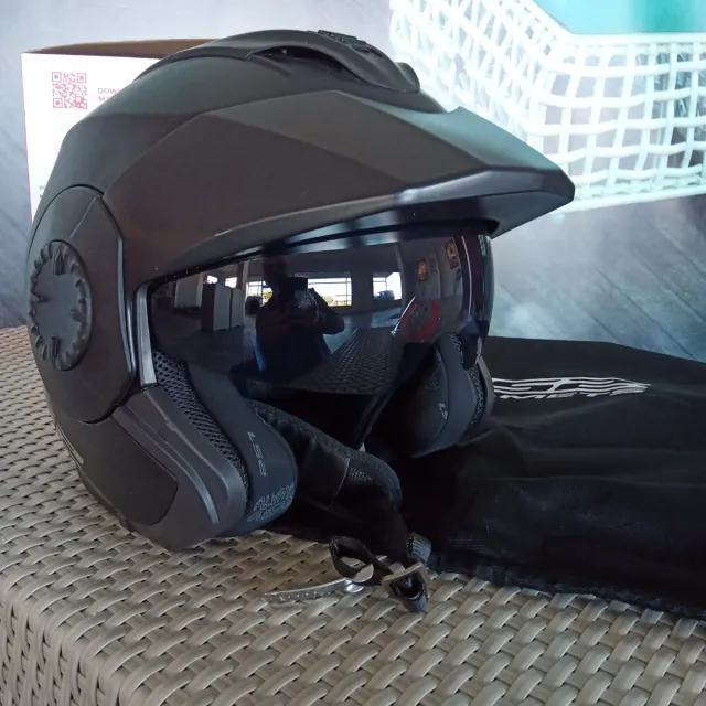 La visera tipo gorra superior se puede quitar, y montar cristal transparente , llevando asi la solar escamoteable y la transparente.