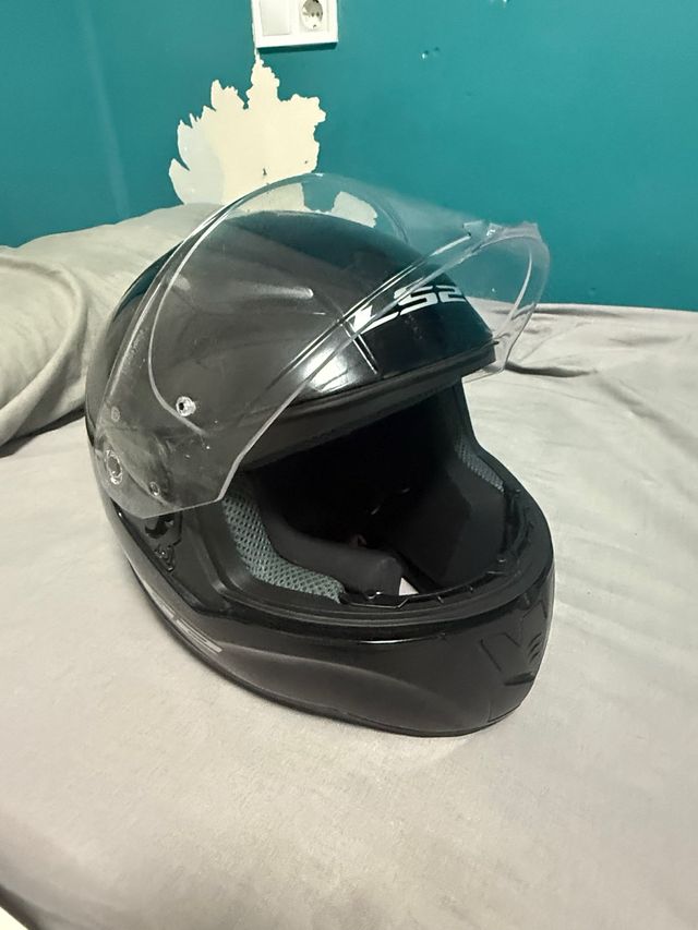 Casco de moto LS2 en color negro. Está en buen estado y listo para usar. - Talla: S - Visera transparente incluida - Diseño deportivo