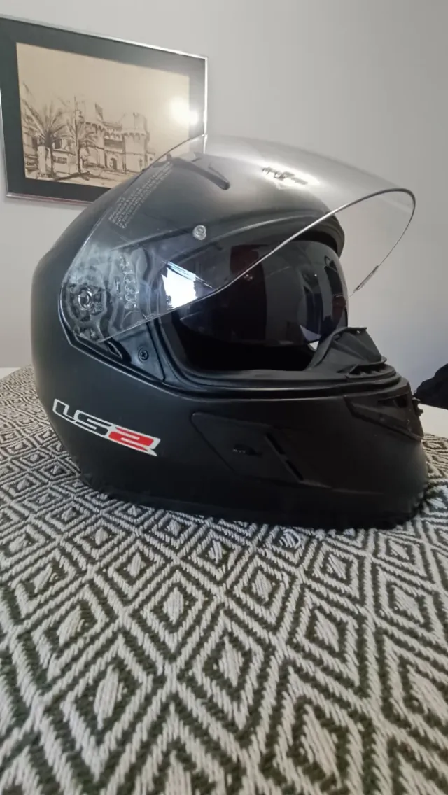 Casco integral LS2 en color negro mate y talla L. buena ventilación y visor polarizado - Diseño aerodinámico. - Visera transparente - Cierre de seguridad.