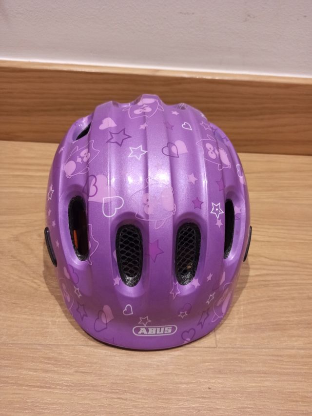 Detalles del productoCasco de niño o niña de color morado con dibujos. Ajustable a la cabeza. Es de la marca ABUS. Está como nuevo. Sólo en persona. Medidas del producto