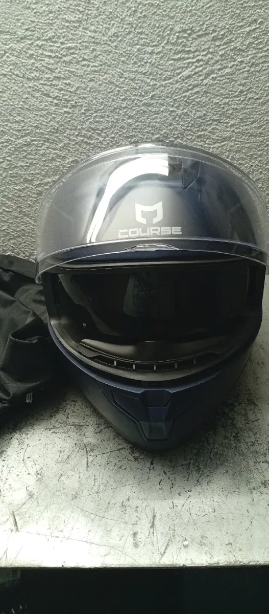 Casco de moto integral marca COURSE en color azul. Visera transparente. TallaL 59/60 - Diseño aerodinámico. - Interior cómodo. - Cierre de seguridad.pinlok incluido