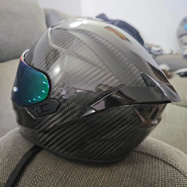 Casco fibra de carbono 130R con una pequeña marca pantalla cambiada y antibaho..