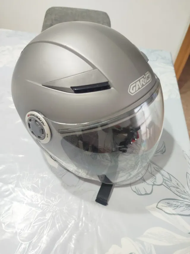 Detalles del productoCasco de moto de la marca Garibaldi, ideal para ciclomotor. Su diseño es moderno y funcional.