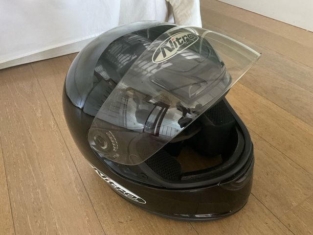 Casco integral de moto Nitro en color negro. Diseñado para ofrecer protección y comodidad. - Visera transparente. - Interior acolchado. - Talla L