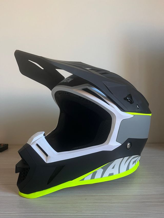 Detalles del productoCasco de moto integral Raven en color negro con detalles en amarillo y gris. Diseño moderno y aerodinámico.