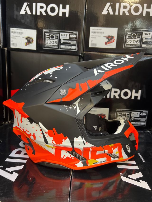 Detalles del productoCasco de moto Airoh Twist 3 para motocross. Talla M (57-58cm) Diseño llamativo con detalles en naranja y blanco.