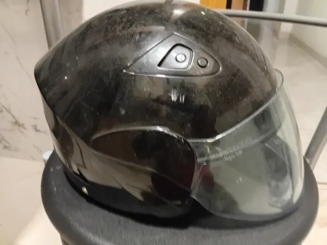 Casco de moto estilo scooter. - Color negro brillante. - Visera transparente.