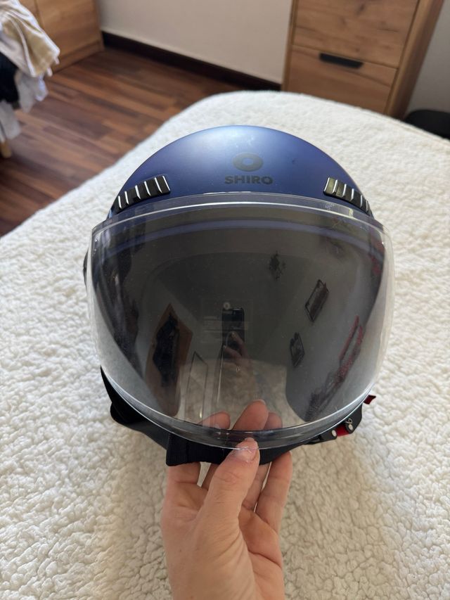 Detalles del productoCasco de moto de la marca Shiro en color azul. Modelo kioto. Precio en webs sobre 40eu.