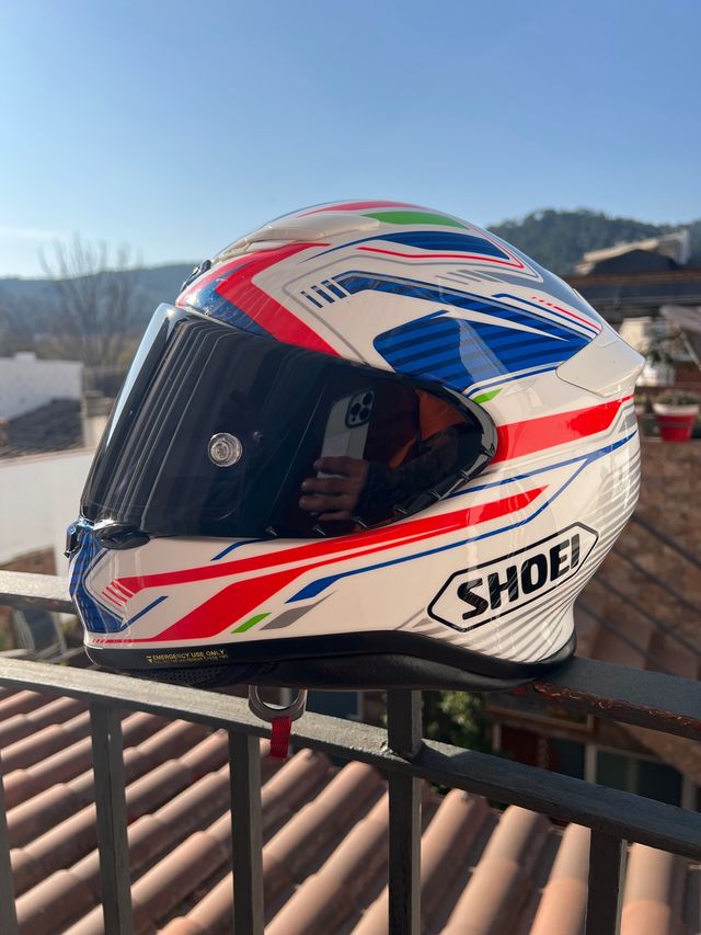 Detalles del productoCasco de moto Shoei NXR con un diseño deportivo y llamativo.
