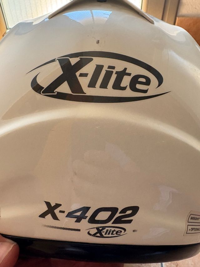 Detalles del productoCasco de moto X-Lite X-402 en color blanco. Está en buen estado, aunque presenta algunas pequeñas marcas de uso.
