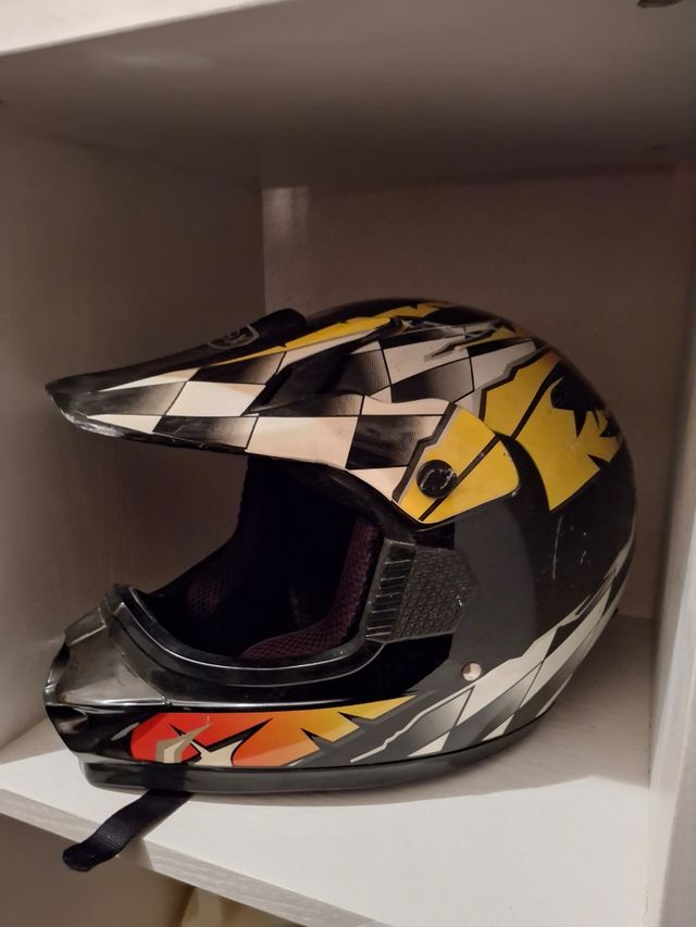 Detalles del productoCasco de motocross con un diseño llamativo en negro, amarillo y blanco.