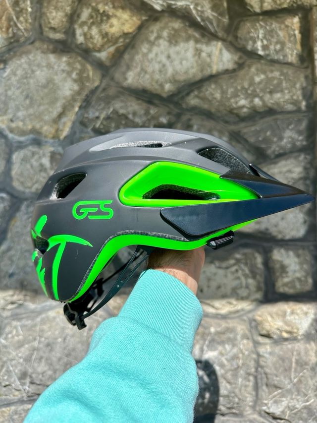 Detalles del productoCasco de mtb marca GES. En perfecto estado (sin ningun roce ni golpe). Utilizado muy poco. Tiene sistema microajustable en la parte de la nunca, y sistema de doble ajuste en ambas direcciones en mandibula. Talla M-L. Precio nuevo 70€.