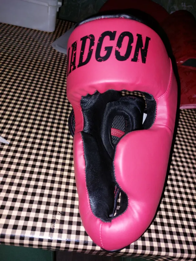 Casco de protección para Muay Thai. - Color rosa. - Inscripción MADGON en negro.