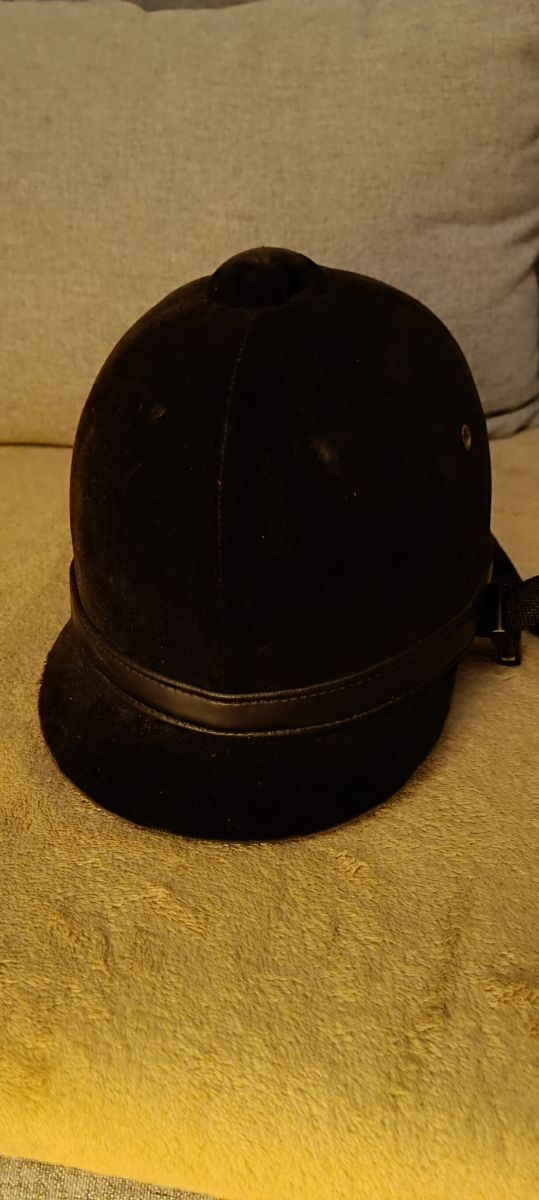 Casco equitación para niños entre 3 y 5 años. Tiene protector en la nuca. De terciopelo negro. En buena condiciones