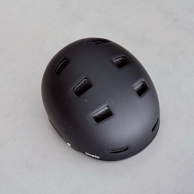 Casco de bicicleta de la marca Oxelo, en color negro. Esta nuevo con alguna marca.