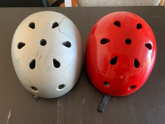 2 cascos marca oxelo, para patinaje, bicicleta, skate, patinete etc, ajustables precio por unidad 5€