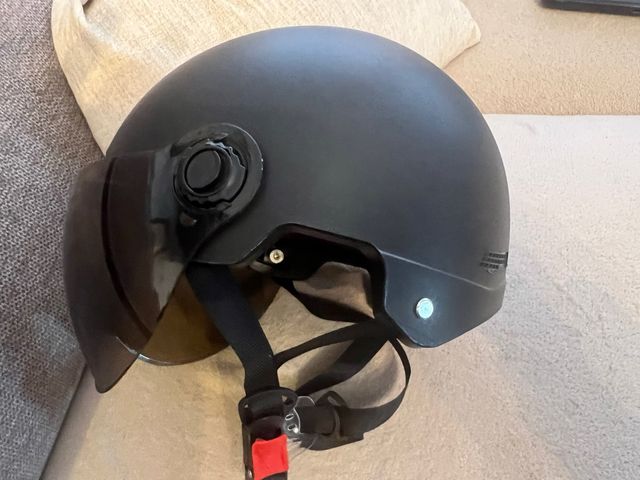 Casco negro para patinete con visor. - Ajustable para mayor comodidad. - Visor integrado para protección ocular.