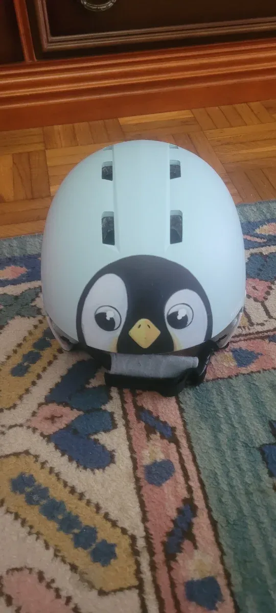 Detalles del productoCasco infantil con un divertido diseño de pingüino, ideal para esquí, snowboard o bicicleta. Protege a los más pequeños en sus aventuras.
