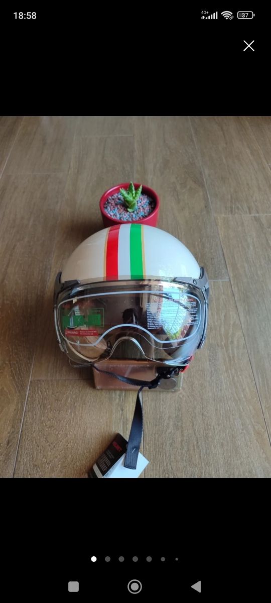 Casco estilo retro, ideal para un look vintage. Su diseño unisex lo hace versátil. - Talla M. - Diseño tricolor. - Estilo Jet.