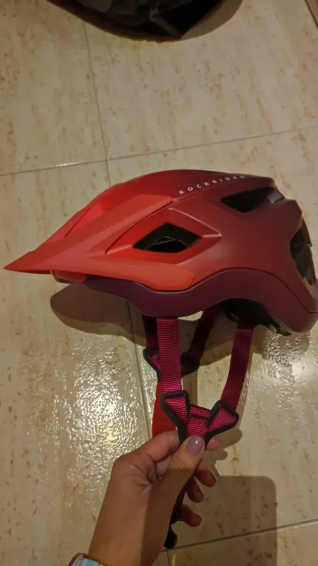 Detalles del productoCasco de bicicleta de montaña Rockrider en color burdeos. Diseñado para protegerte en tus rutas.