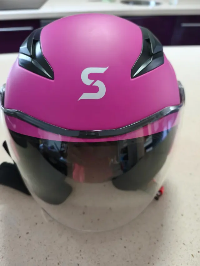 Detalles del productoCasco de protección en color rosa, diseñado para niñas. Cuenta con una visera transparente.