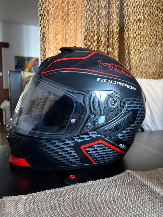 Detalles del productoCasco integral Scorpion 1400 con un diseño deportivo y aerodinámico.