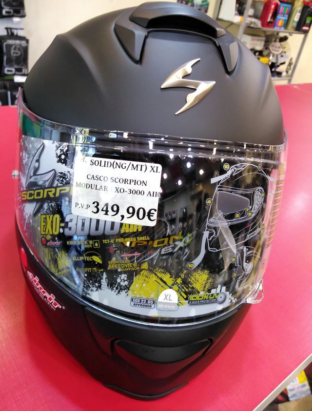 Detalles del productoCasco modular Scorpion Exo-3000 Air Color negro mate con detalles plateados. Calota exterior TCT-U.
