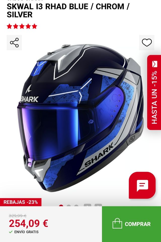 Detalles del productoCasco de moto Shark Skwal i3 en azul y plata, con detalles cromados. Está prácticamente nuevo y en perfecto estado.