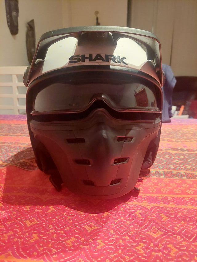 Casco de moto de la marca Shark, en buen estado. - Diseño moderno y funcional. - Visera integrada. - Protección facial.