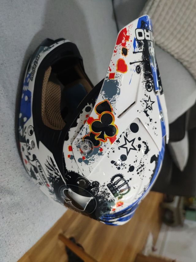 Casco de moto para niños, en perfecto estado. - Diseño llamativo con detalles de naipes. - Talla infantil talla L - Marca Shiro. Sin casi uso