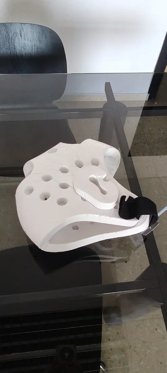 Casco de taekwondo sin usar, listo para estrenar. - Color blanco. - Diseño con orificios para ventilación. - Correa de sujeción negra.