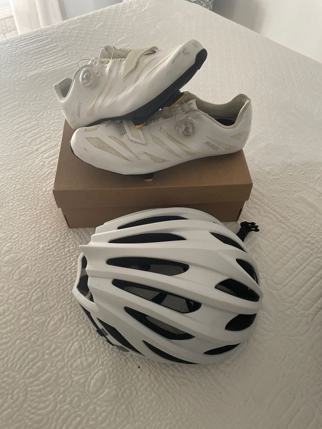 Conjunto de ciclismo con casco y zapatillas. - Casco de talla L. - Zapatillas Mavic de talla 44.