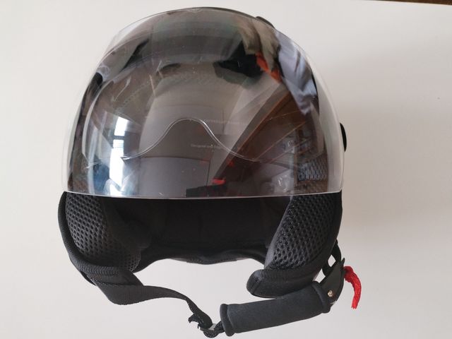 Talla L Casco demi-jet en policarbonato, visera parasol y ventilación Dynamic Flow. Peso 920g +/- 50 gr Correa con pasante de barbilla fácilmente extraíble.