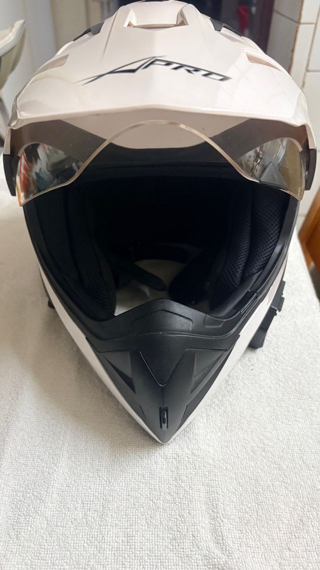 Casco de moto Xpro en color blanco. Diseñado para ofrecer protección y comodidad. - Visera transparente. - Interior acolchado. - Diseño aerodinámico. - Talla M