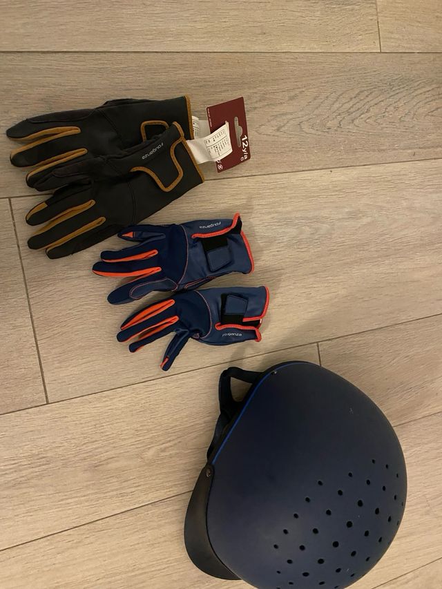 Casco talla M y guabtes de 10 años utilizados y 12 sños con etiqueta para niña. Ver fotos.
