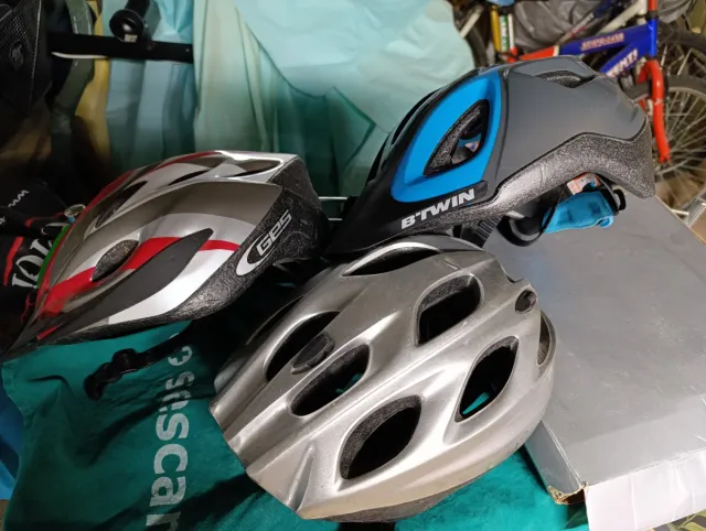 Detalles del productoSe venden tres cascos de bicicleta , ideales para protegerse en tus salidas.