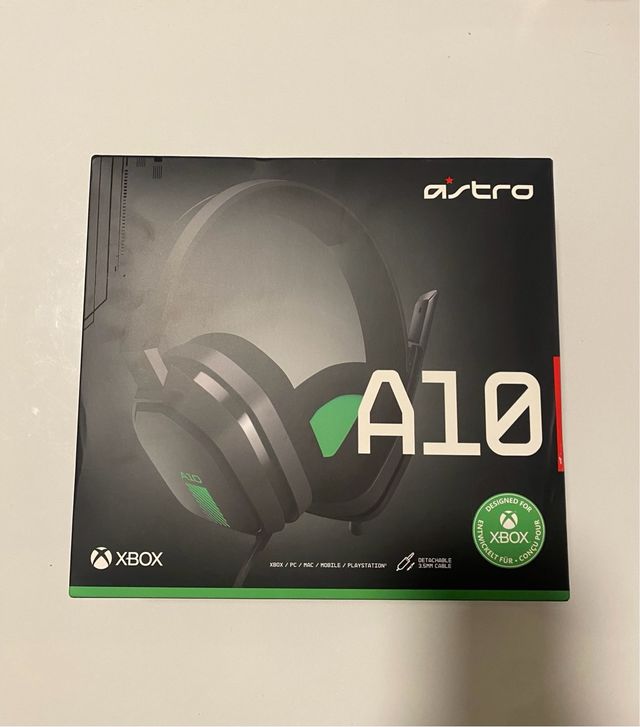 Cascos gaming Astro A10 diseñados para Xbox, nuevos sin estrenar. - Compatibles con Xbox, PC, Mac, móvil y PlayStation. - Cable de 3.5mm desmontable.