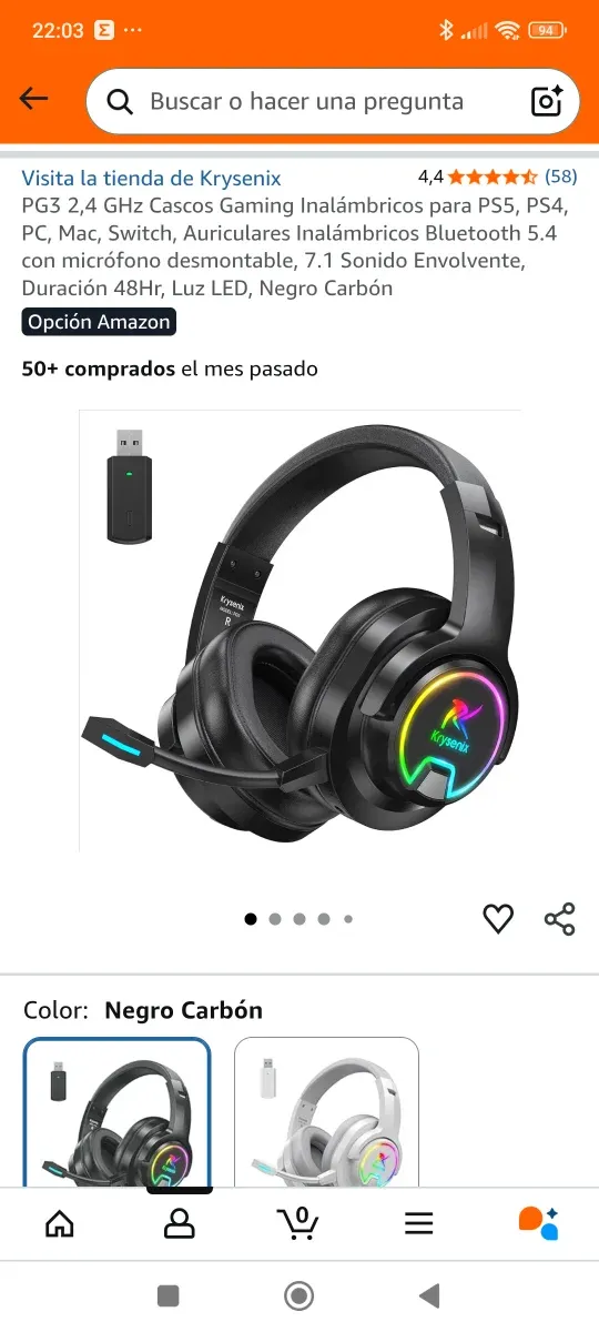 Detalles del productoCascos gaming inalámbricos en color Negro Carbón. Ideales para PS5, PS4, PC, Mac y Switch. NUNCA USADOS.