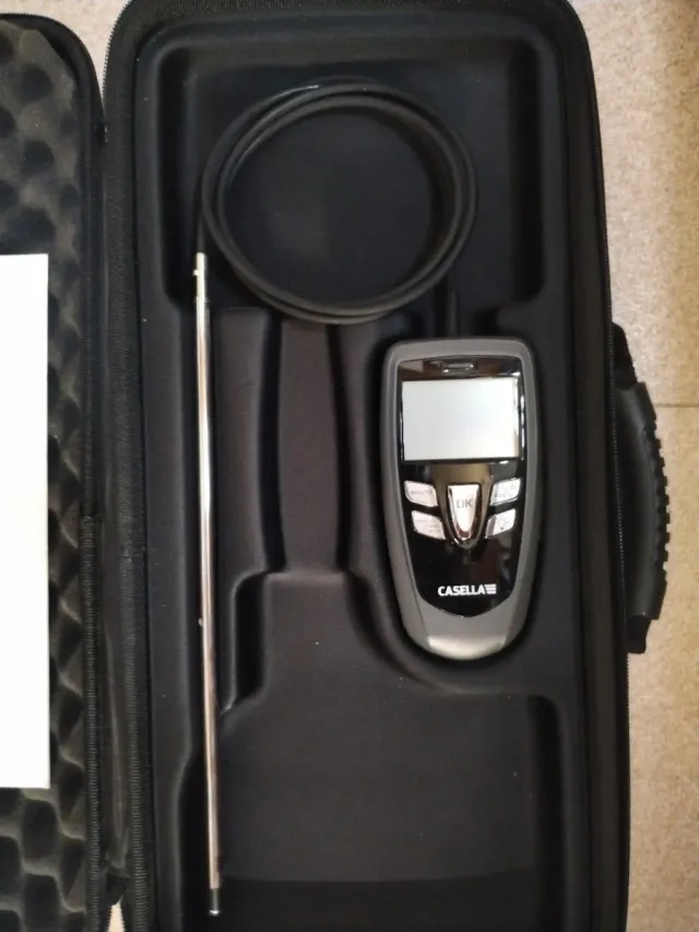 Termo anemómetro Casella VT 100E con su estuche original. - Incluye sonda. - Cable enrollado.
