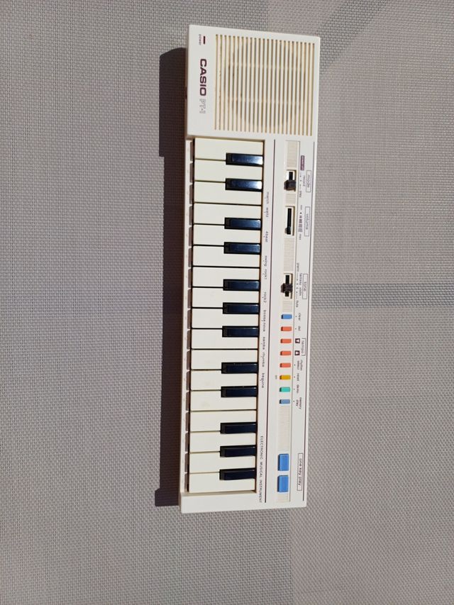 Casio PT-1, un teclado miniatura clásico. Es un instrumento musical electrónico en buen estado.