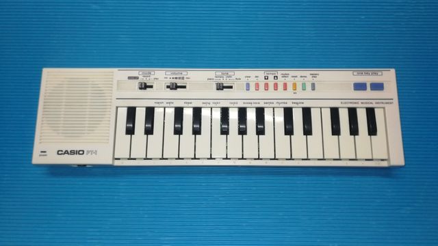 Detalles del productoTeclado electrónico vintage Casio PT-1, años 80s. Se encuentra en muy buen estado de conservación y funciona perfectamente. Conserva muy bien su color blanco. Se ha testeado todas las funciones de grabación, sonido nítido y fuerte.