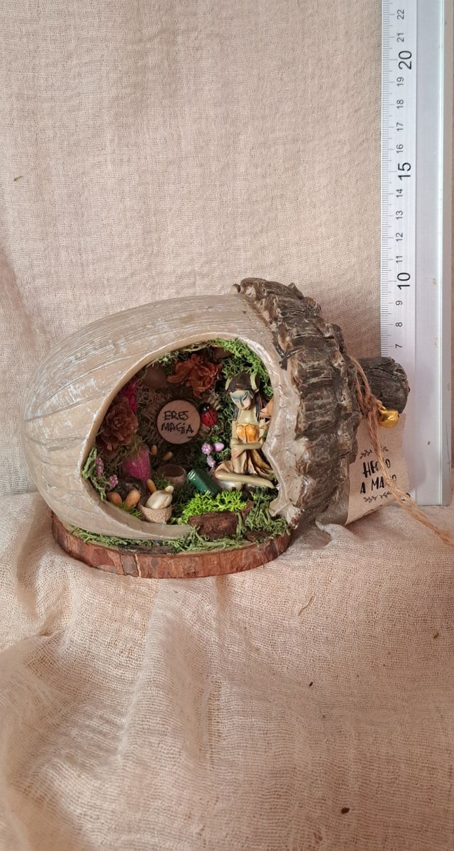 Pieza única y artesanal que parece salida de un cuento : casita en forma de bellota, hecha con mimo y detalle con elementos naturales.La casita que toda Hada quisiera tener.
