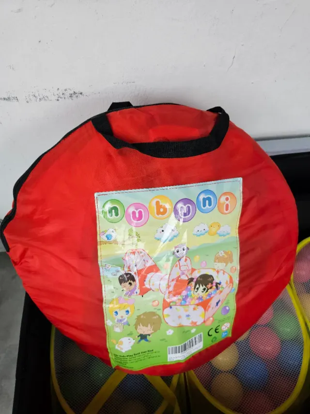 Conjunto de juego infantil Nubuni que incluye una piscina de bolas, casa y túnel. 3 bolsas de bolas de 100 cada una (total 300 bolas)